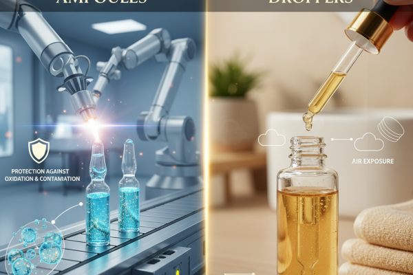 โรงงานผลิตครีมเผย: ความต่างต้นทุนและกลยุทธ์แบรนด์ ระหว่างเซรั่มดรอปเปอร์ (Mass) และแอมพูล (Premium)